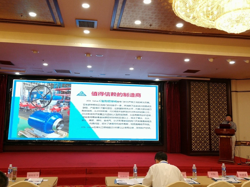 阿伐流体控制有限公司作为本次会议主要协办单位,组织了专业的技术和销售团队参加了会议,在会议期间对公司的形象、技术、产品、服务等方面进行了展示和推广;对参加本次会议的我公司主要用户进行了回访和交流;对市场潜在用户进行了深入接触和交流。还参加了24日晚间的水煤浆气化岛生产一线座谈交流咨询会,并对各煤化工生产企业针对水煤浆气化黑水、灰水、渣水、激冷水以及水煤浆、合成气等管线阀门使用过程中存在的问题进行了解答,提出的参考解决方案和建议。
