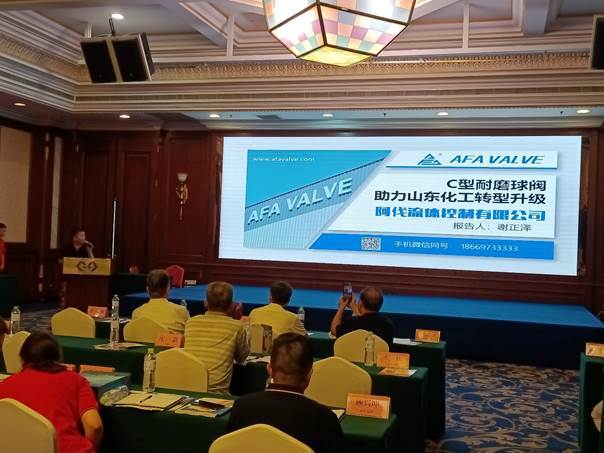 AFA公司董事长谢正泽先生在论坛上作了《金属硬密封C型耐磨球阀助力山东化工转型升级》专题报告,详细介绍了AFA公司金属硬密封C型耐磨球阀研发经历、核心技术优势以及在化工领域广泛的应用业绩,强调了该产品对于化工企业实现生产运行安稳长满优的重要作用。